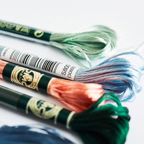 손쉬운 조작과 제어력을 높이려면 바늘을 실을 꿰기 전에 촉촉한 천으로 DMC 새틴 자수 실을 댐핑하십시오.
