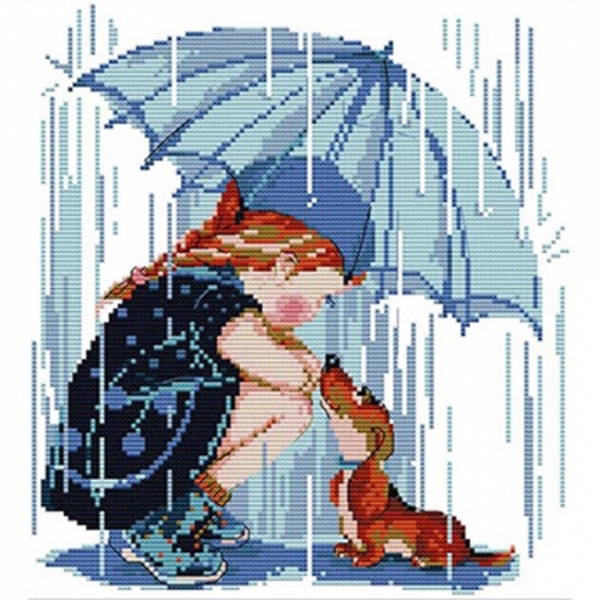 실십자수 프린트패키지 14ct-소녀와강아지(5D프린트십자수)-RA244-Y