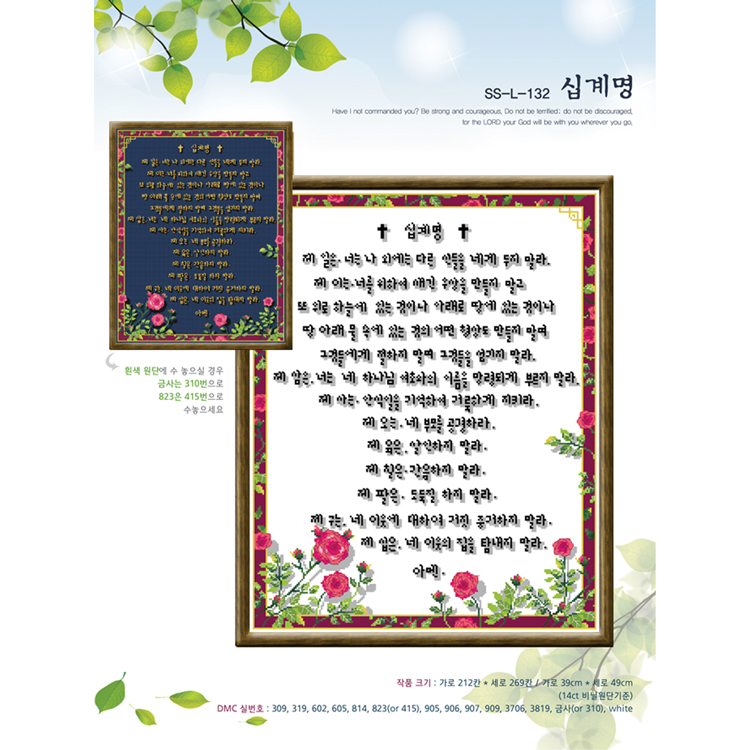 DMC 실번호 : 309, 319, 602, 605, 814, 823(or 415), 905, 906, 907, 909, 3706, 3819, 금사(or 310), white