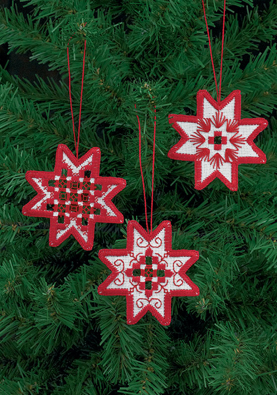 Hardanger 오너먼트 RED STARS(3개 세트)-01-5624
