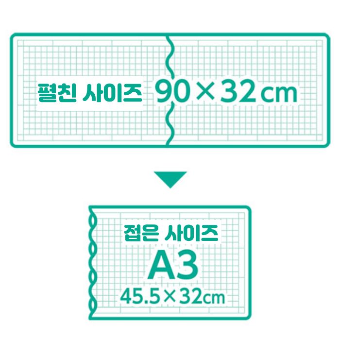 펼쳤을 때 90 x 32 cm, 접었을 때 45.5 x 32 cm(A3사이즈)로